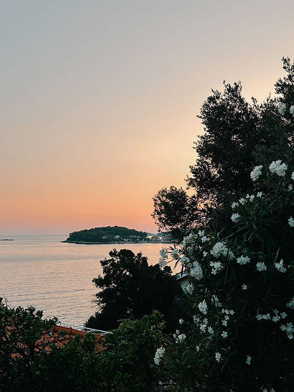 If your journey will take you to Prižba, use the evening for a walk. The sunsets here were special. I must say that even though we had the most beautiful view from the terrace of the neighboring islands, I couldn’t resist a walk around the place. I could not look at these sunsets, the peace and forest of the sea. I went around the whole place in exactly half an hour’s walk, and the scenes were incredibly beautiful. On the first walk, I couldn’t turn off the camera on my cell phone because everything was so beautiful, and the other few times I walked without my cell phone. Only the sea and me. Disconnecting from the virtual world and connecting with nature and what is in front of you right now is a privilege that I always try to use.
